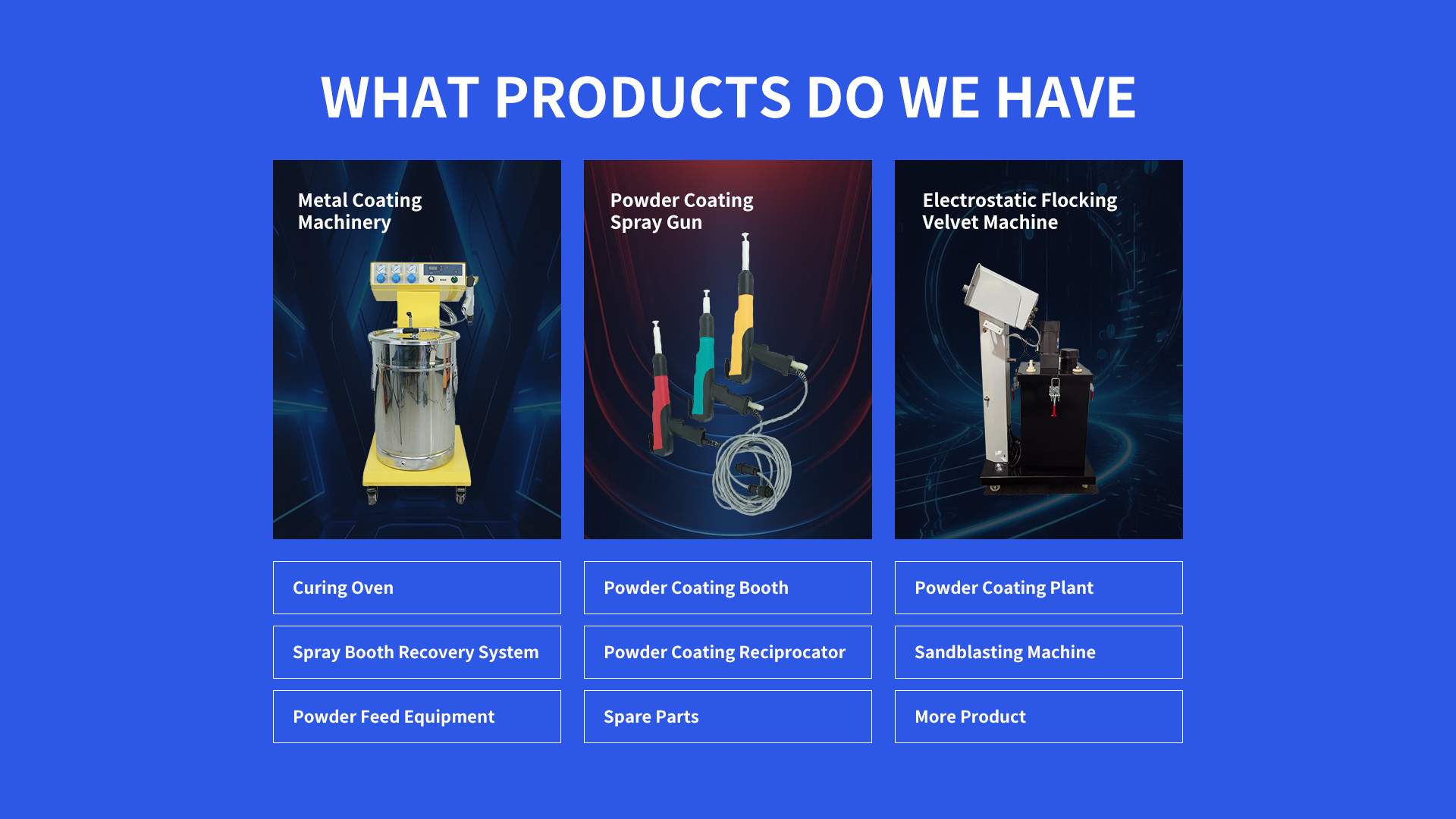 Core Components of Industrial Powder Spraying Equipment Systems Key elements include electrostatic guns, powder recovery cyclones, conveyor belts, and infrared curing zones. High-end models feature AI-driven defect detection and automated powder replenishment.